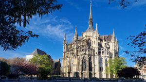 Reims Conflans Schloss Chantilly Rouen Gedächtniskirche Jeanne d'Arc Holzkirche in Honfleur Betonkirche in Le Havre Etretat Kloster Boscherville Garten von Monet Giverny Jardin Luxembourg Sacre Coeur